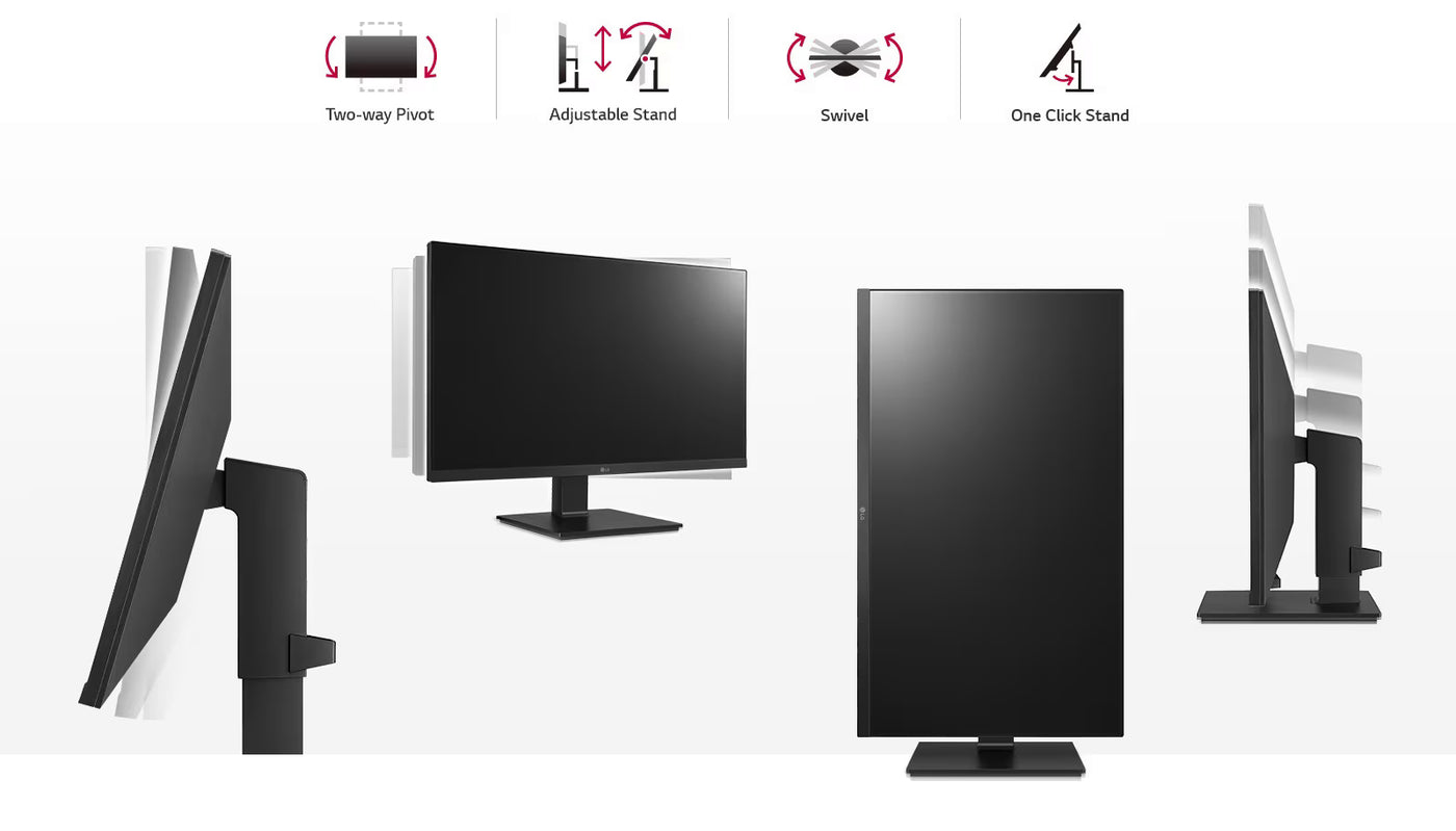 Az LG Business monitorjai Stílusos és Ergonómikus kialakítással és a jól megszokott Masszívan Stabil Talppal készülnek. Dönthető, Forgatható és Állítható Magasságú mechaizmusuknak köszönhetően bármilyen setuphoz könnyedén alkalmazkodnak.