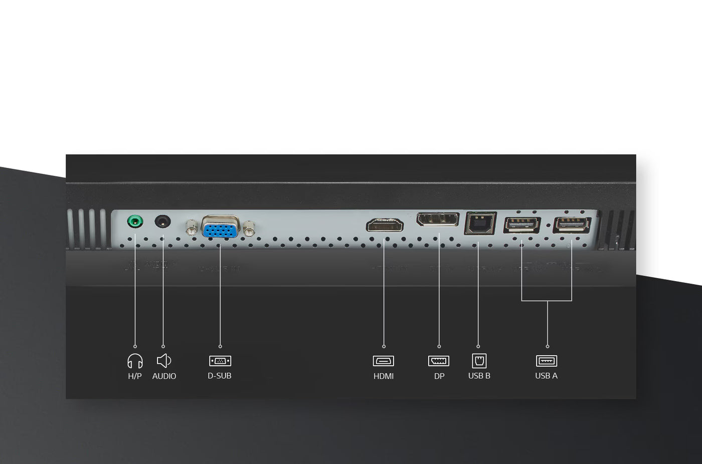 A mai trendnek megfelelően, nem csak HDMI, DisplayPort csatikkal látták el a hátlapon, de a jó öreg VGA is megtalálható rajta. Kényelmi megoldásként 2db USB 3.0 Downstream és 1db USB-B  Upstream port is rendelkezésedre áll, hogy a perifériák kábeljeivel se kelljen bajlódnod.