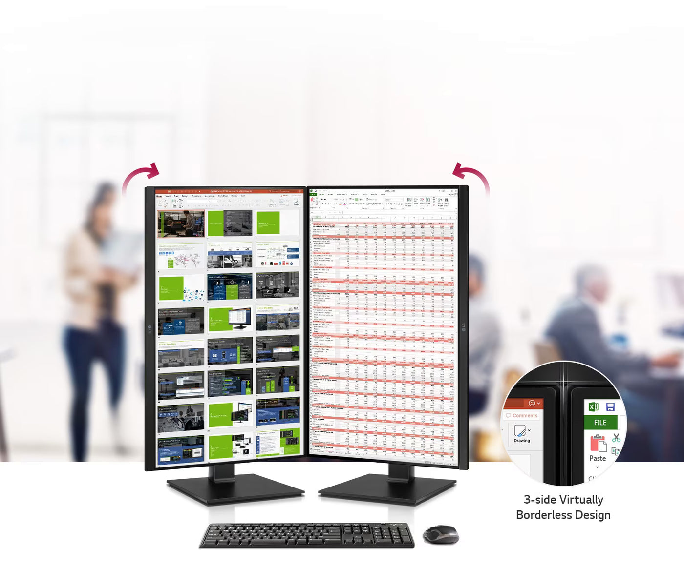 Az LG Business monitorjai Stílusos és Ergonómikus kialakítással és a jól megszokott Masszívan Stabil Talppal készülnek. Dönthető, Forgatható és Állítható Magasságú mechaizmusuknak köszönhetően bármilyen setuphoz könnyedén alkalmazkodnak.