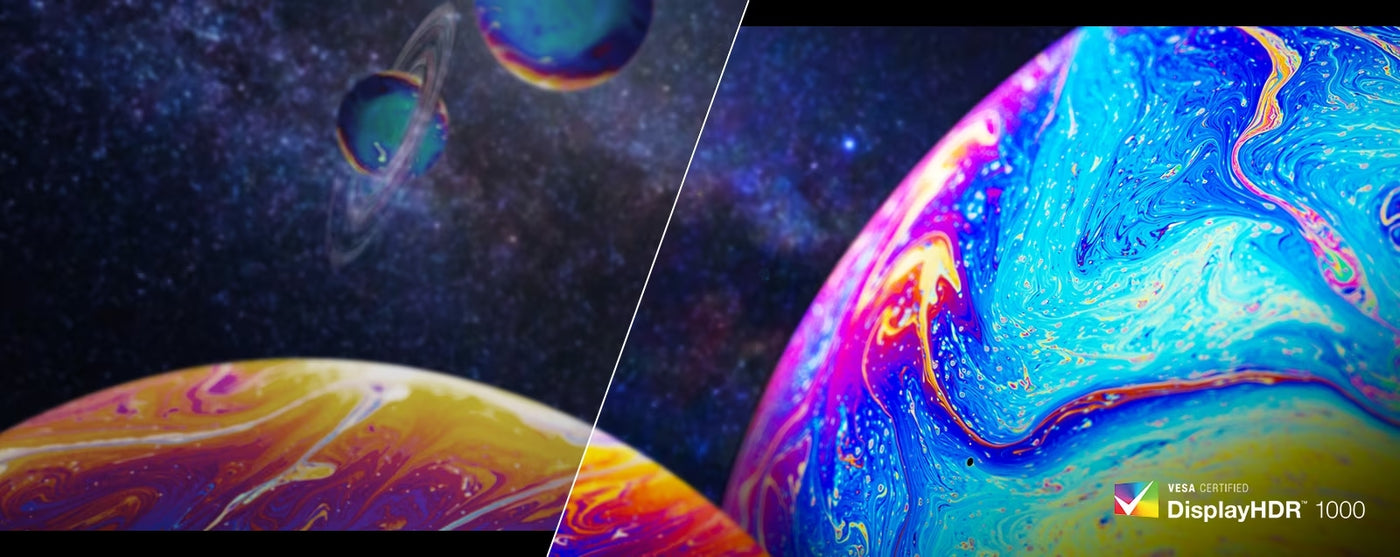 Reklám és hirdető kijelzőket megszégyenítő fényerejével akár kültéri használatra is alkalmas, valamint tökéletesen bánik minden HDR tartalommal. A magas dinamika tartománynak köszönhetően és a brutális 1200 Nites maximum fényerővel kizárólag a valósághű megjelenítés kap szerepet minden játékban.