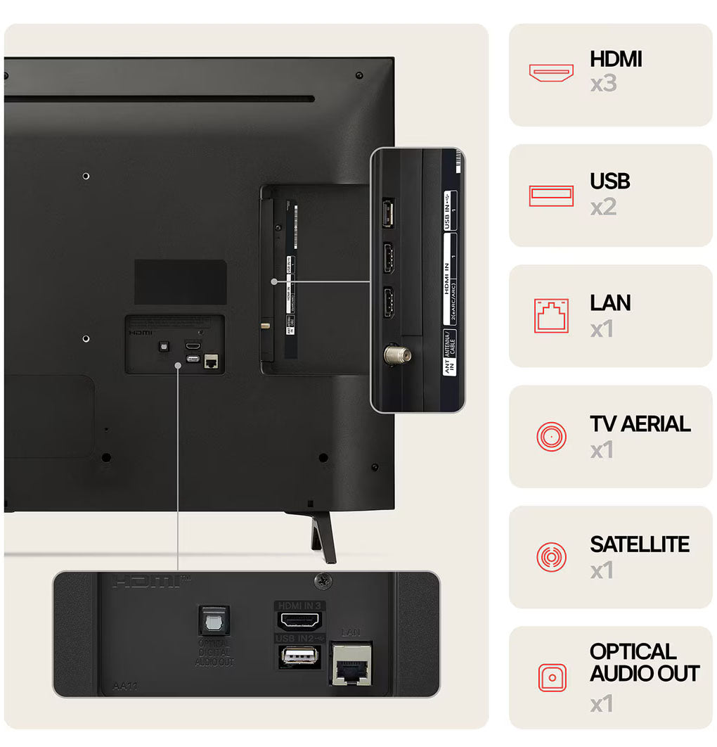 Modern, sokoldalú és minden igényt kielégítő kompatibilitás. A 3db HDMI és megannyi csatlakozóval felfegyverzett LG Smart TV zökkenőmentes kommunikál minden digitális eszközöddel.