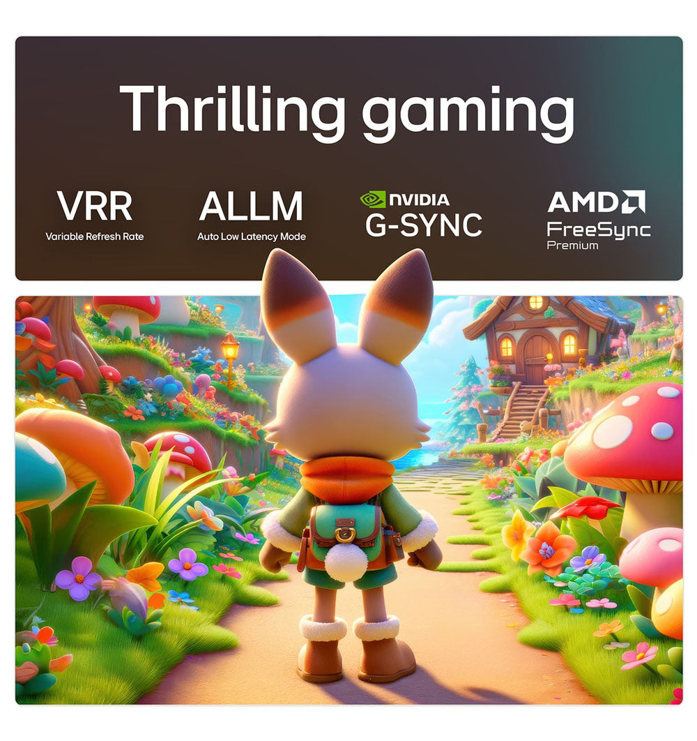 Frissített 2. Generációs Alpha 8 procit finomhangolták a tavalyihoz képest, így még hatékonyabban skálázza fel digitális tartalmaidat és állít elő virtuális térhangzást. A jól megszokott Végtelen kontrasztarány és Precíz színspektrum elvárásaidon felül teljesítenek a 120 Hz-es 0.1 ms reszponzív 4K felbontású panellel NVIDIA G-Sync™ és AMD FreeSync™ Premium támogatás mellett.